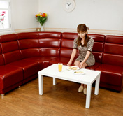 業務用ボックスソファの家庭や飲食店などでの使用例をご覧いただけます。画像をクリックすると拡大画像が開きます。